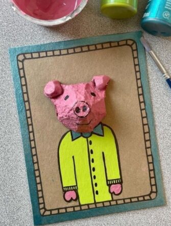 Avec un peu de peinture, un pinceau et quelques idées rigolotes, nous réaliserons un portrait d’animal pas comme les autres : une tête en relief fabriquée à partir de boîte d’œufs et un corps dessiné plein de fantaisie.