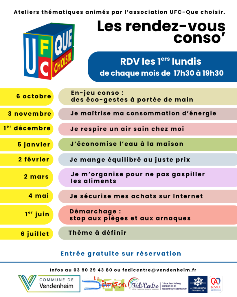 Infos au 03 90 29 43 80 ou fedicentre@vendenheim.fr