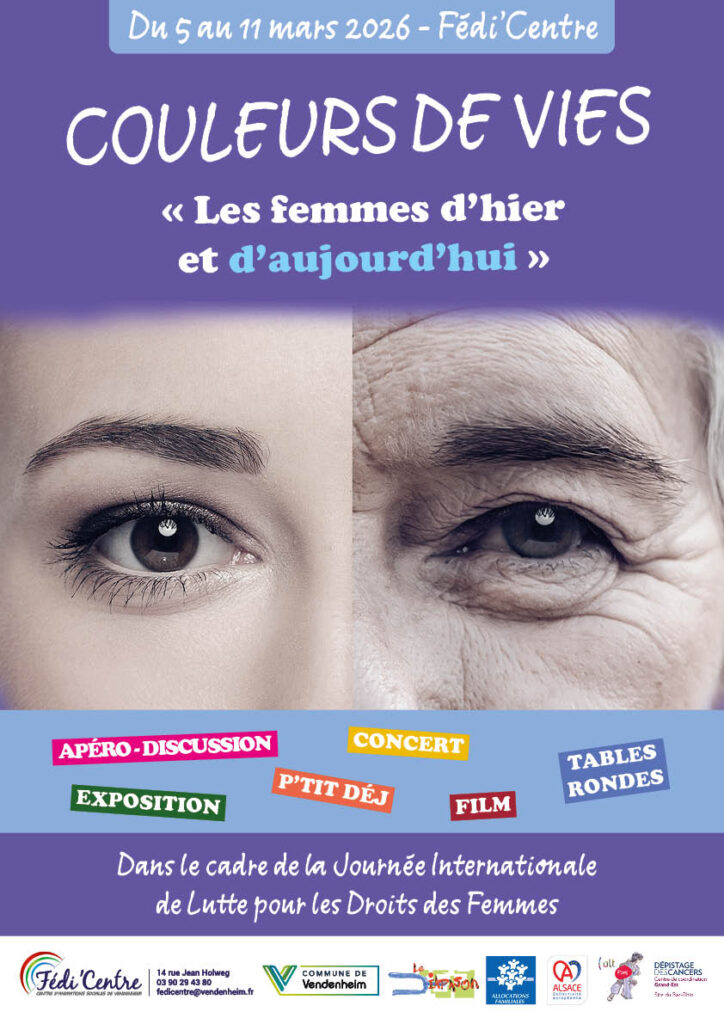 Tous les ans au mois de mars, le Fédi’Centre organise la manifestation « Couleurs de vies » en lien avec la journée internationale de lutte pour les droits des femmes. Cet évènement nous permet de mettre en lumière des combats de femmes qui œuvrent pour leur condition, leur pays et les générations futures.